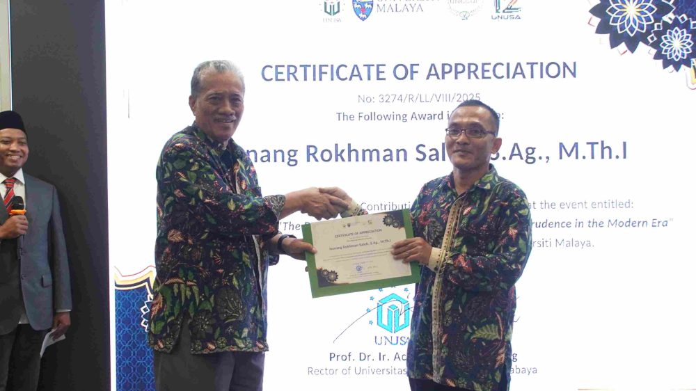 Surabaya – Universitas Nahdlatul Ulama Surabaya (Unusa) gelar seminar internasional yang berkolaborasi dengan Universiti Malaya. Seminar tersebut bertema “The Development and Dynamics of Islamic Jurisprudence in the Modern Era”. Bertujuan untuk memperluas pertukaran ilmu, gagasan, serta pengalaman pada bidang hukum islam di tingkat global.  Acara tersebut digelar pada Selasa (12/8) di ruang seminar lantai 2, Unusa Kampus C.